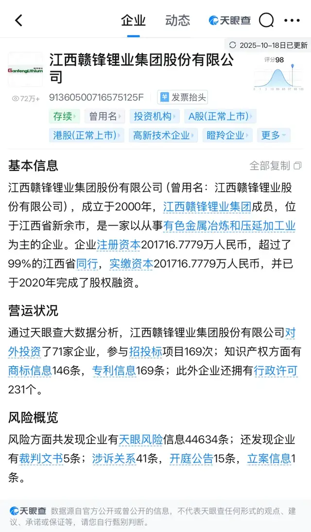 以赣锋锂业为例,根据天眼查信息,它在2016年就布局了固态电池研发中心,是国内最早布局固态电池的玩家之一。但同时,其核心主业碳酸锂近年来价格持续走低,导致公司业绩承压,急需一个新的、充满想象力的故事来提振资本市场信心。